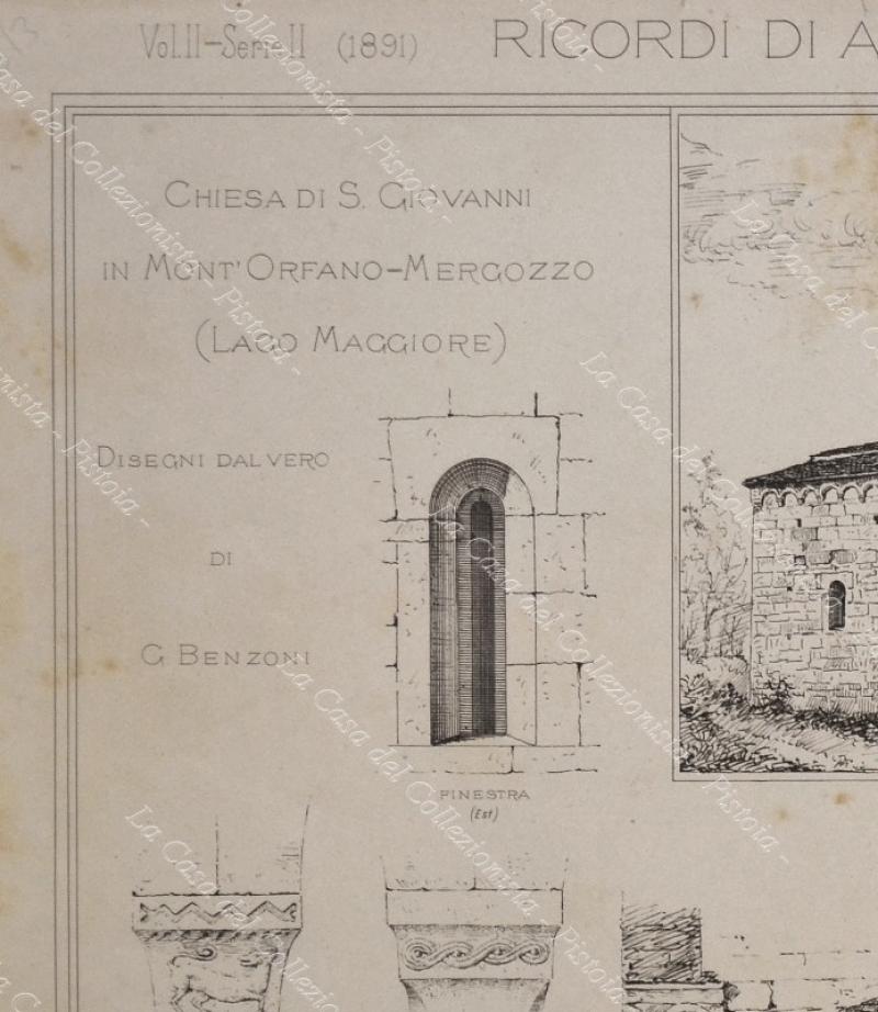 Veduta e particolari della chiesa di S. Giovanni. Tavola di mm 525x380 tratta da Ricordi di Architettura. Qualche ingiall. e piccoli strappetti sui bordi. (Rif.A4980-400/43)