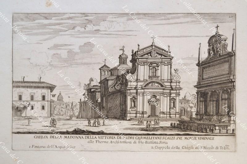 Lazio - Roma. CHIESA DELLA MADONNA DELLA VITTORIA DE PADRI CARMELITANI SCALZI SUL MONTE VIMINALE. Incisione realizzata con la tecnica dell'acquaforte da Matteo Gregorio Rossi tratta dall'opera "Del Nuovo Splendore delle Chiese di Roma Moderna in Prospettiva", edita a Roma nel 1686. Mm 285x180 (ai margini mm 420x260). Buona conservazione. (Rif.D8356)