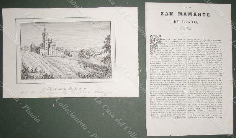 LIANO, Castel S.Pietro, Bologna. Chiesa di S.Mamante. Litografia di mm 225x155 ai margini, dis. da E.Corty. Unita pagina di testo descrittivo. Tratta dall'opera "Le Chiese Parrocchiali della diocesi di Bologna ritratte e descritte", edita nel 1837. (Rif.E5646)