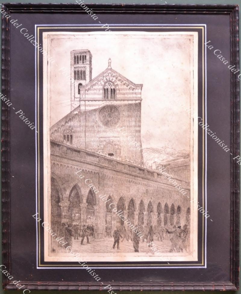 LIGURIA – GENOVA. La chiesa di Santo Stefano. Incisone all’acquaforte di Giuseppe Bodrato (La Spezia 1886 – Genova 1954). Firmata e datata (1928) a matita in basso a sinistra. Mm 295x445 più margini. Montata in vecchia cornice di mm 480x580. Buona conservazione. (Rif.D9146-271/72)