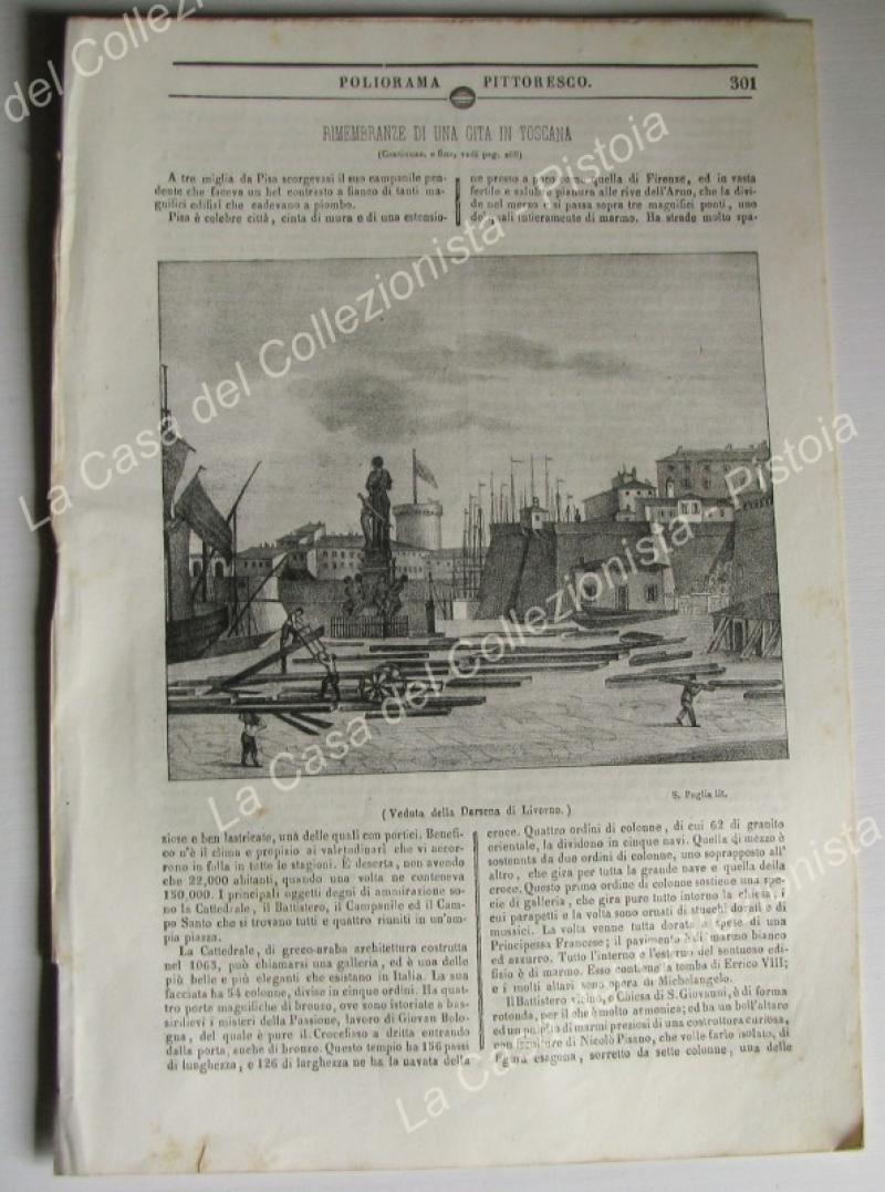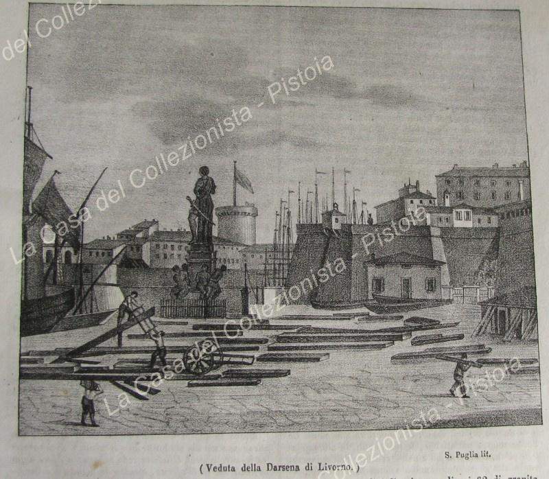 LIVORNO. La darsena. Poliorama Pittoresco 1836, periodico illustrato edito in Napoli a partire dal 1845. Intero fascicolo di pagine 8 con litografia mm 155x135 e relativo articolo. (Rif.A5581-439/49)