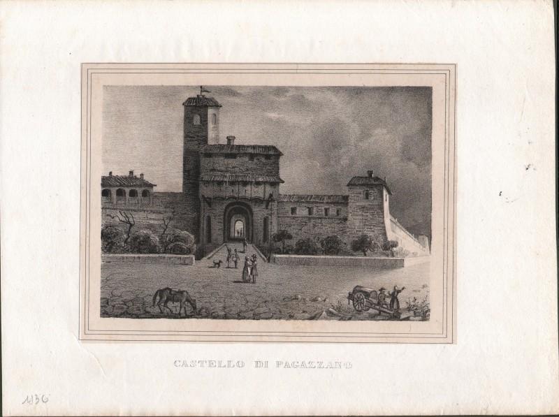 LOMBARDIA – BERGAMO. “CASTELLO DI PAGAZZANO”. Due belle vedute incise in litografia tratte dall’opera Lombardia Pittoresca di Giuseppe Elena, una dalla prima edizione del 1838, l’altra da quella del 1861. Ciascuna circa mm 190x130 (ai margini 315x240). Ottima conservazione. (Rif.D4522 - 131/68)
