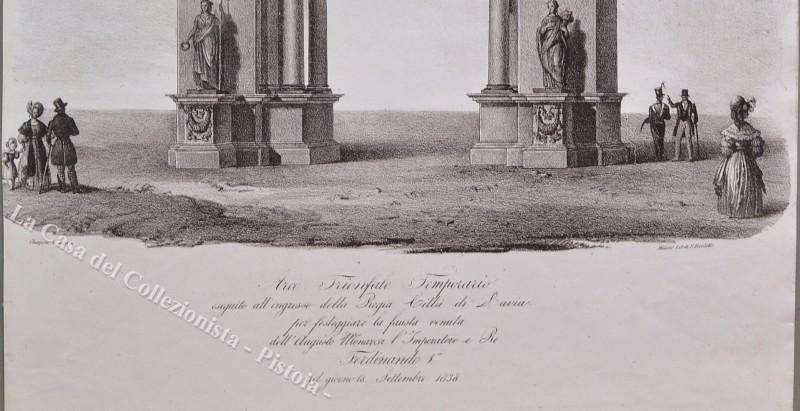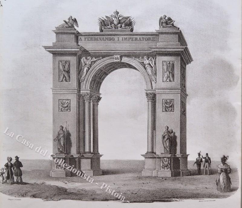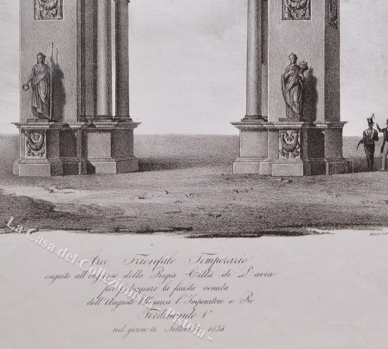 LOMBARDIA – PAVIA, feste. Arco Trionfale Temporario eseguito all'ingresso della Regia Città di Pavia per festeggiare la fausta venuta dell’Augusto Monarca l’Imperatore e Re Ferdinando I nel giorno 18 Settembre 1838. Chiappa inv., Milano, Lit. Bertotti, 1838.