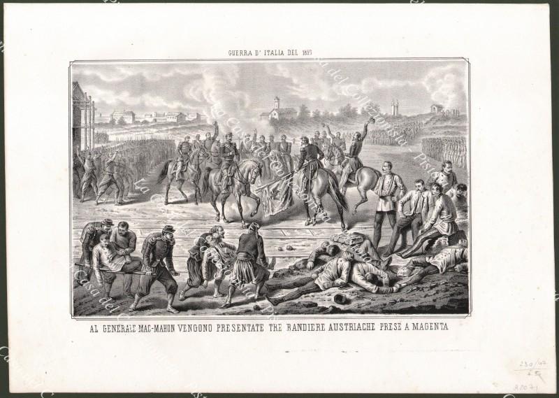 Lombardia- Risorgimento. MAGENTA. Al Generale Mac Mahon vengono mostrate le bandiere prese agli austriaci