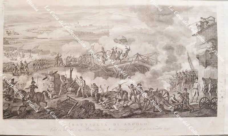 NAPOLEONE. Lombardia."BATTAGLIA DI ARCOLO". Acquaforte tratta dall'opera di De Norvins, circa 1840