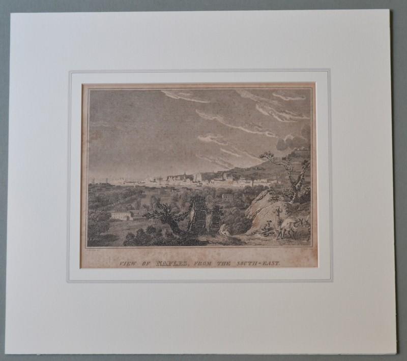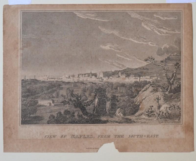 NAPOLI. "VIEW OF NAPLES, FROM THE SOUT - EAST". Incisione all'acquaforte di T.Smith, anno 1815.