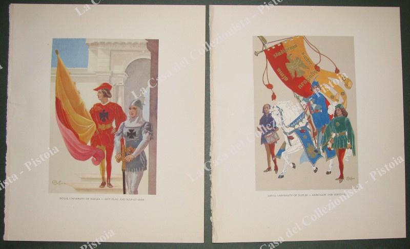 NAPOLI. Reale Università. Coppia di tavole a colori disegnate da E.Bottaro e impresse in fotolitografia. Circa 1930, ai margini mm 240x290. Ottima conservazione. (Rif.E3260)