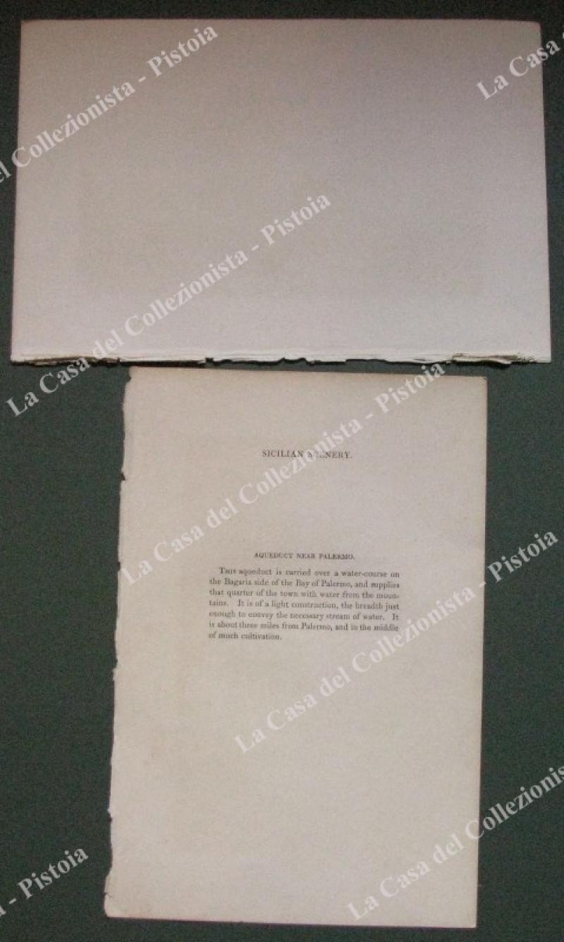 PALERMO dintorni. 1823. "AQUE DUCT NEAR PALERMO". Incisione di Goodall, tratta da SICILIAN SCENERY di M.Light, Londra 1823. Mm 204x132 (ai margini 270x175). Unita pagina di testo descrittivo. Ottima conservazione. (Rif.E2302)