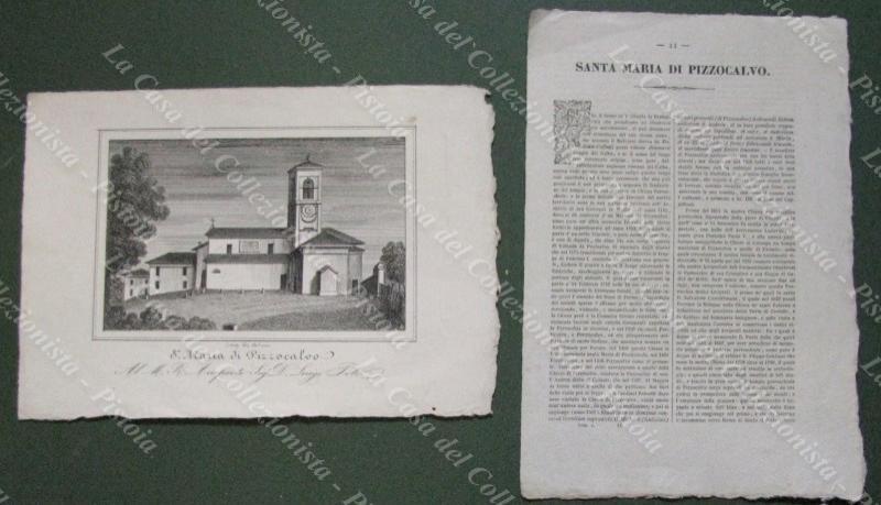 PIZZOCALVO, Bologna. Chiesa di Santa Maria. Litografia di mm 225x155 ai margini, dis. da E.Corty. Unita pagina di testo descrittivo. Tratta dall'opera "Le Chiese Parrocchiali della diocesi di Bologna ritratte e descritte", edita nel 1837. (Rif.E5632)