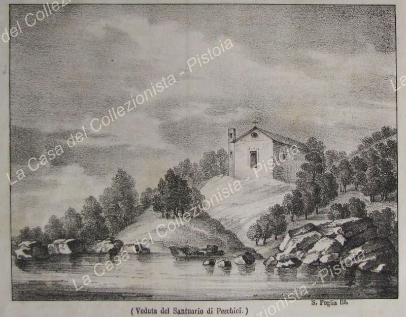 Puglia. GARGANO. Veduta del santuario di Peschici. Poliorama Pittoresco anno 1844, periodico illustrato edito in Napoli a partire dal 1836. Intero fascicolo di pagine 8 con litografia di mm 155x118 e articolo relativo. (Rif.A5576-640/44)