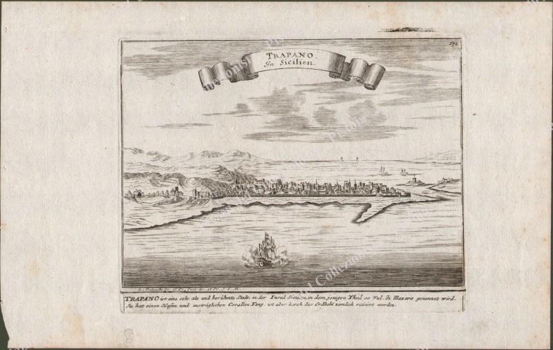 SICILIA - TRAPANI. "Trapano in Sicilien". Veduta generale. G. Bodenher, circa 1705.