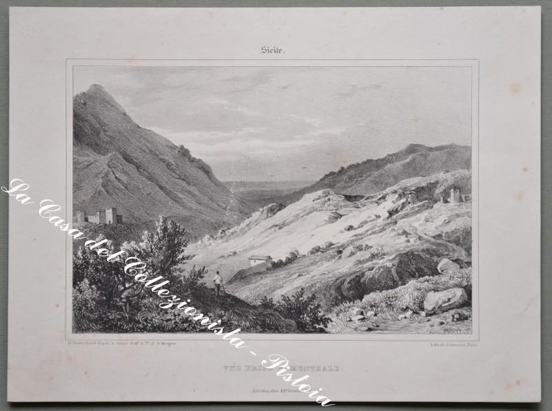 SICILIA – MONREALE dintorni. "Vue prise a Monreale”. De Morogues dis., Lemercier Lit., 1828. Litografia di mm 210x143 (ai margini 280x210). Finissimo splendido panorama. Rara e decorativa. Minime imperfezioni. (Rif.D1876 - 252/65)