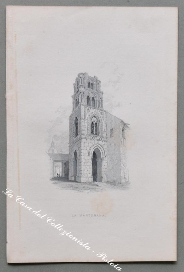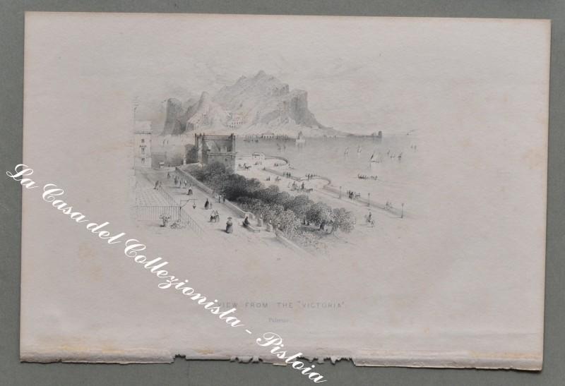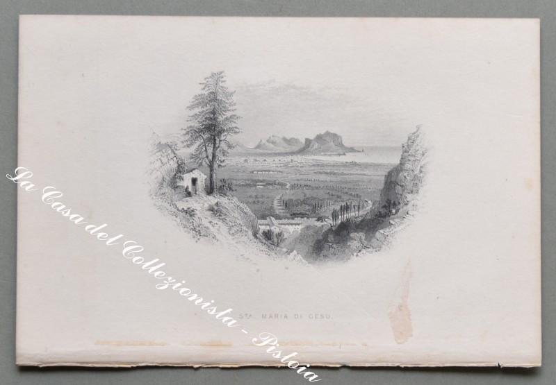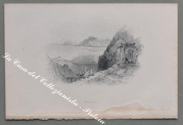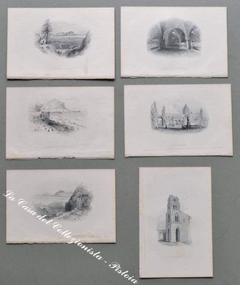 SICILIA – PALERMO. Serie di 6 finissime incisioni su acciaio ciascuna di mm 208x130 al margine. Barlett, circa 1850: Palermo (panorama dal Monte Pellegrino), la Cattedrale, la Martorana, S. Maria di Gesù, veduta dalla Vittoria. (Rif.D1868 - 253/65)