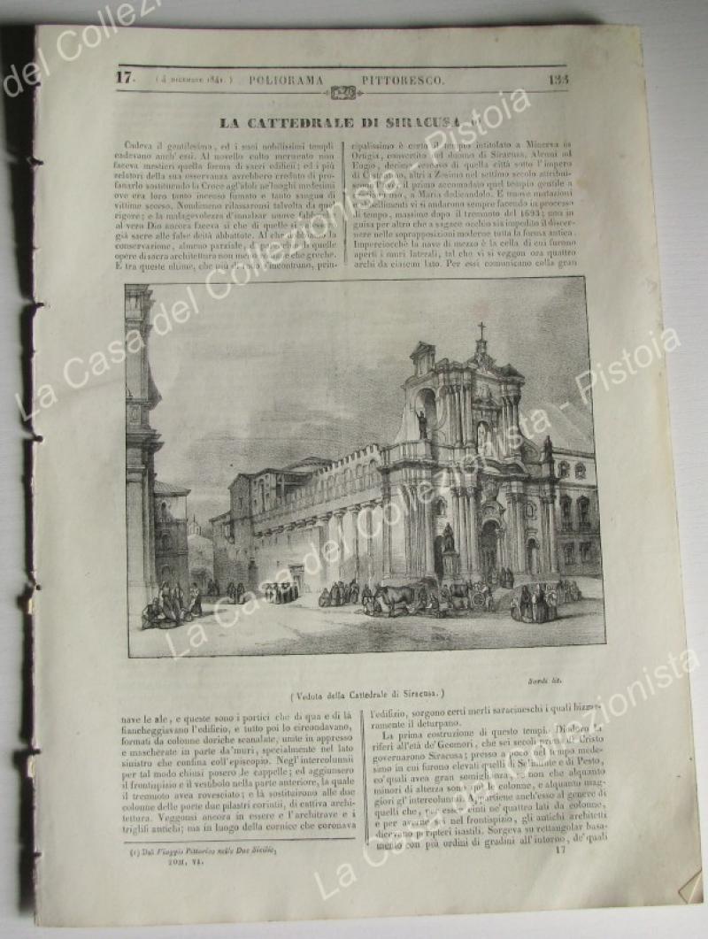 SIRACUSA. Cattedrale e sua piazza. Poliorama Pittoresco 1836, periodico illustrato edito in Napoli a partire dal 1836. Intero fascicolo di pagine 8 con litografia mm 155x93 e relativo articolo. (Rif.A5548-484/49)