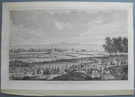 TORINO, Entrèe des francais a Turin, le 20 frimaire an VII. Acquaforte di Duplessi-Bertaux