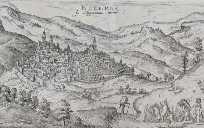 UMBRIA - LAZIO. NOCERA – CASTELNOVO. 1580 circa, Braun Hogenberg. “NOCERRA in Appennino Monte” - “CASTEL NOVO”.