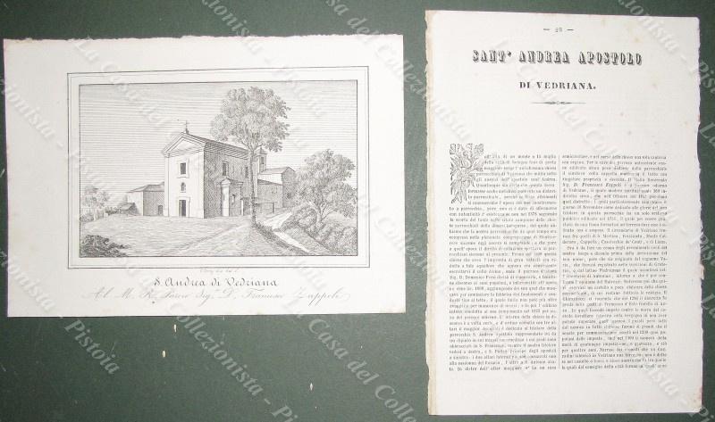 VEDRIANA, Castel S.Pietro, Bologna. Chiesa di S.Andrea. Litografia di mm 225x155 ai margini, dis. da E.Corty. Unita pagina di testo descrittivo. Tratta dall'opera "Le Chiese Parrocchiali della diocesi di Bologna ritratte e descritte", edita nel 1837. (Rif.E5649)