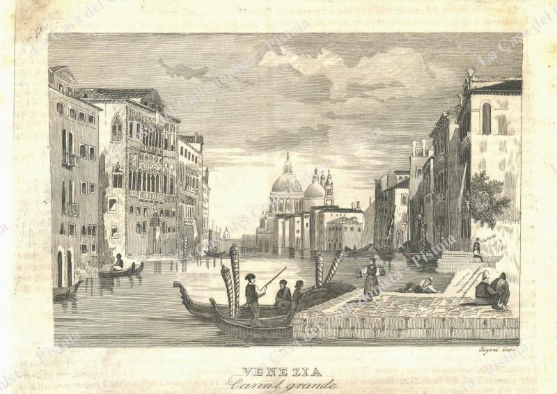 VENEZIA. "Canal Grande". Acquaforte tratta da L'Omnibus Pittoresco del 1841.
