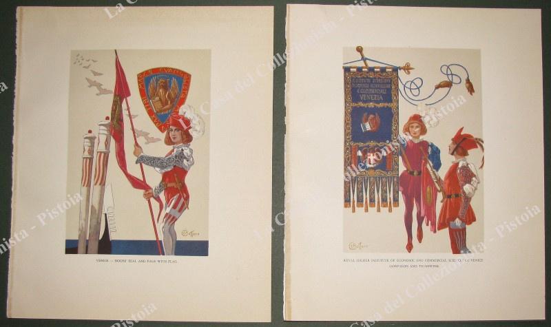 VENEZIA. Reale Università. Coppia di tavole a colori disegnate da E.Bottaro e impresse in fotolitografia. Circa 1930, ai margini mm 240x290. Ottima conservazione. (Rif.E3261)