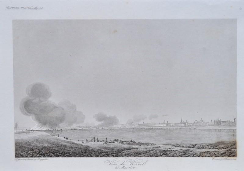 VERCELLI. Vue de Verceil 28 Mai 1800. Veduta panoramica. Mm 240x150 (ai margini 325x225). Disegnata da Pietro Giuseppe Bagetti (1764 – 1831) durante la prima campagna d’Italia dell’esercito francese. Tratta dall’opera GALLERIES HISTORIQUES DE VERSAILLES, circa 1840. (Rif.D3706 - 254/67)