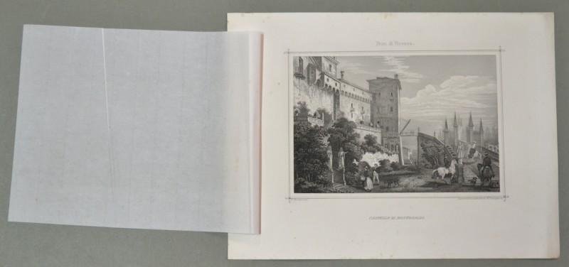 VICENZA. Castello di Montegaldo. Deliziosa veduta con vari personaggi in primo piano. Mm 190x128, ai margini 310x230. Finissima incisione, protette da velina, tratta da ALBUM VON ITALIEN edita a Trieste dal Lloyd Austriaco attorno al 1855.(Rif.D4119 - 215/68)