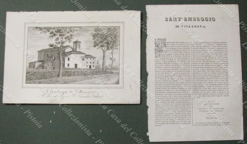 VILLANOVA, Castenaso, Bologna. Chiesa di S.Ambrogio. Litografia di mm 225x155 ai margini, dis. da E.Corty. Unita pagina di testo descrittiva. Tratta dall'opera "Le Chiese Parrocchiali della diocesi di Bologna ritratte e descritte", edita nel 1837. (Rif.E5602)